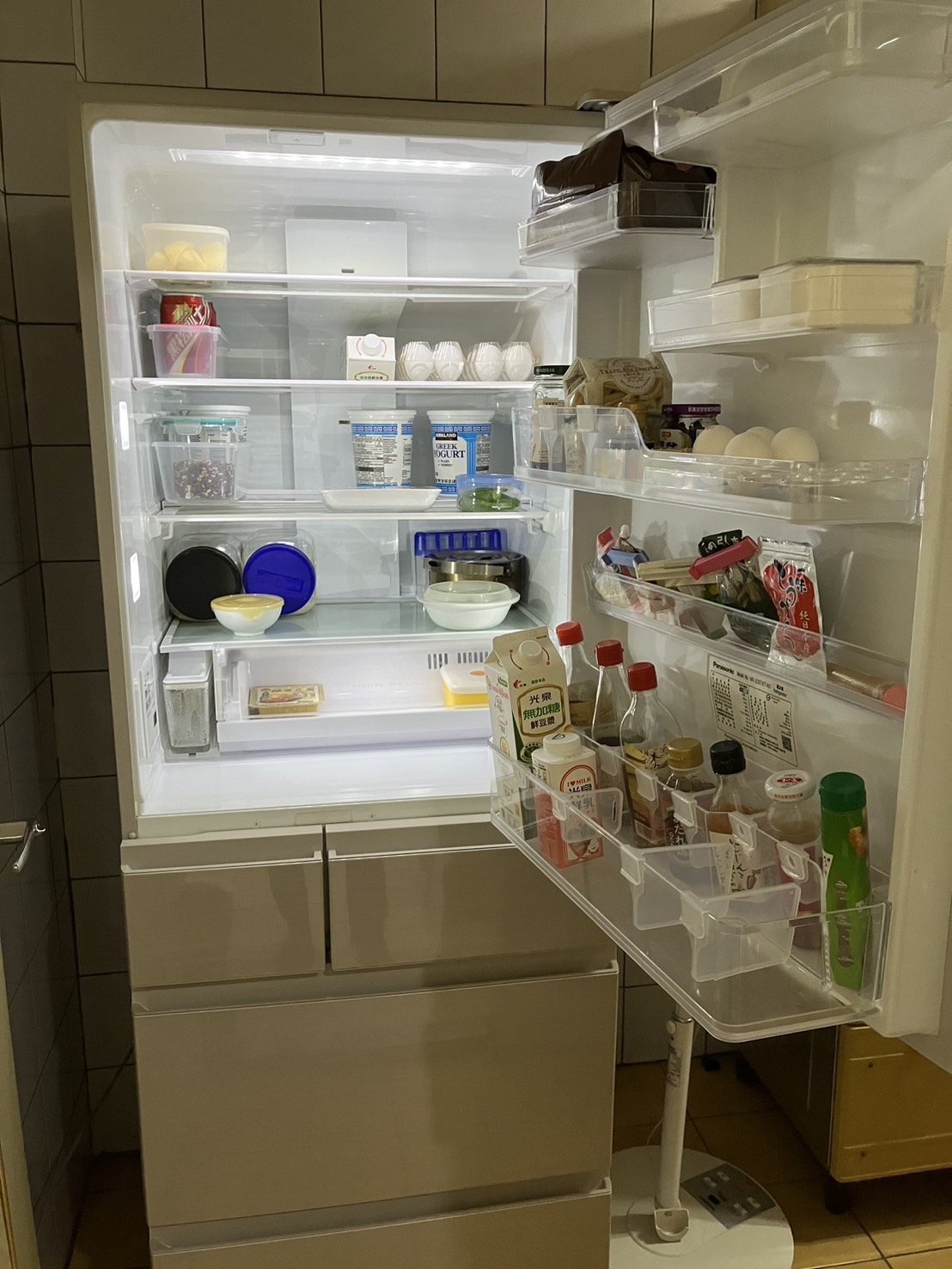 這個五門冰箱很適合家裡窄窄的空間,一打開裡面的燈很明亮不刺眼,要找什麼東西一清二楚,置物空間很大,位置的分配剛剛好,蔬果的保鮮能力也很厲害,各層不會竄味,-3度C微凍結的肉可以很好切,抽屜滑輪也很順,有製冰功能又節能省電。