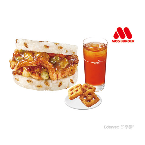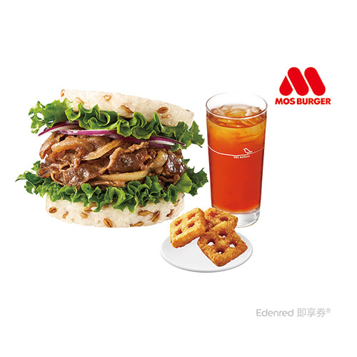 摩斯漢堡-C157超級大麥薑燒珍珠堡+方塊薯餅(3個)+冰紅茶(L) 好禮即享券
